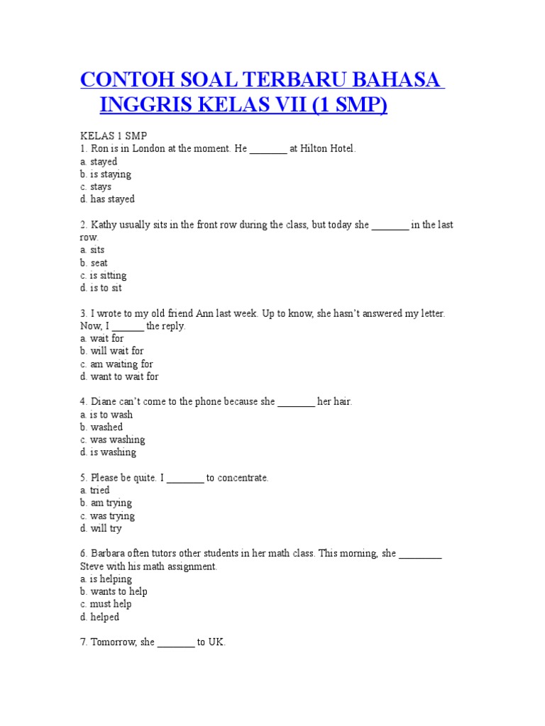 6 Contoh Soal B Inggris Tentang Lagu. Sudah belajar tentang penggunaan waktu dalam bahasa inggris, kan? Demikianlah contoh soal bahasa inggris tentang noun beserta kunci jawabannya. Contoh dan latihan membaca jam , mari kita menyimak soal bahasa inggris tentang jam di bawah ini. Kisi kisi pat bahasa inggris smp kelas 7 kurikulum 2013.