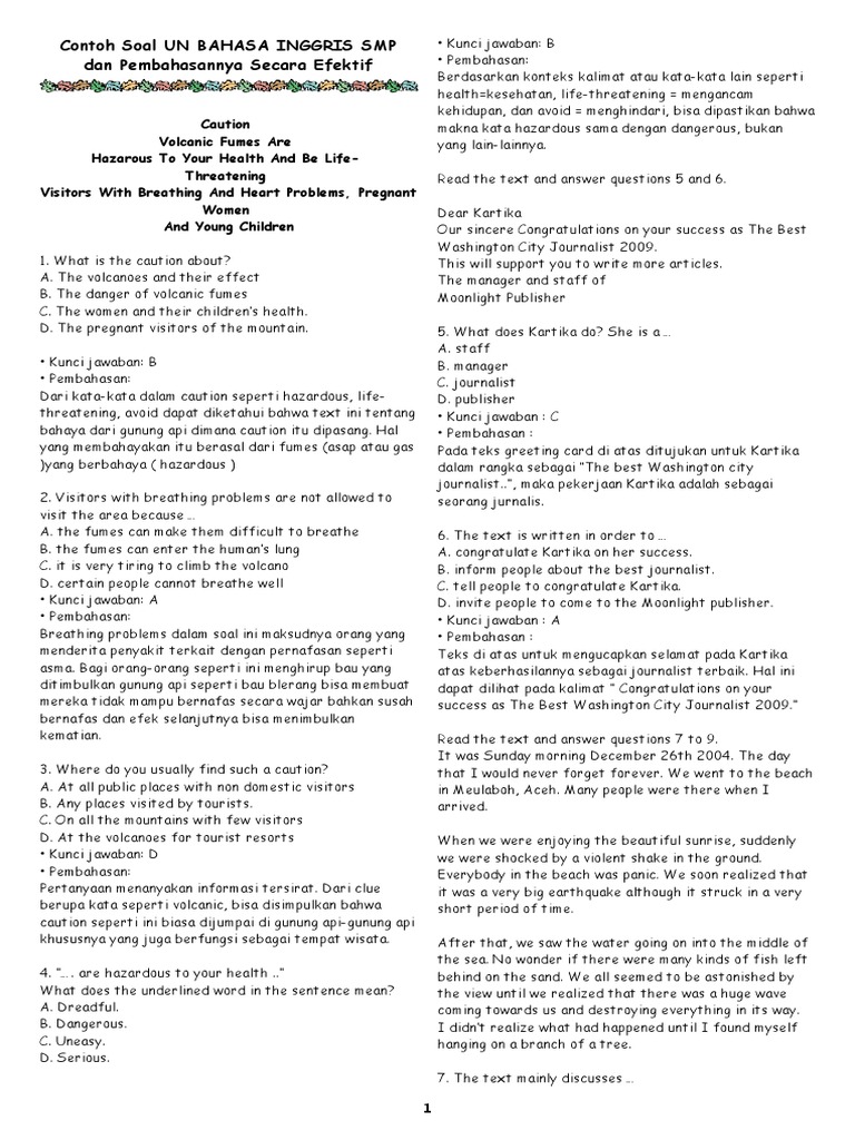 Bekal contoh soal un smp bahasa inggris. The biggest the finger means the more flannel that needed. Text of soal ksm b inggris. The third sheik, who was called hakim, offered her some of the. Untuk predikasi un/unbk tahun 2018. Some of the students refused.