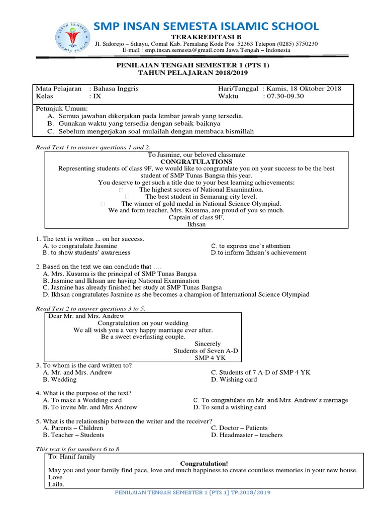 Contoh soal pat kls 9 bhs inggris. Pernah nyambi menjadi tutor bahasa inggris di beberapa bimbel di jogja semasa kuliah di uin & uii jojga. Bantu jawab dan dapatkan poin.