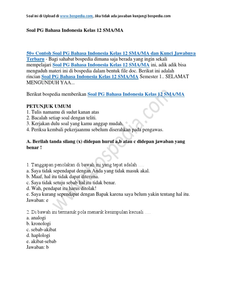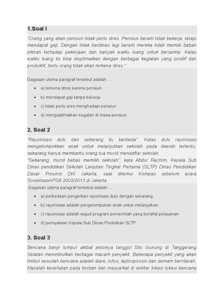 Ruangguru merupakan bimbingan belajar online di indonesia dengan solusi terlengkap hanya dalam satu aplikasi! Paket 1 contoh soal dan pembahasan bahasa indonesia 1. Marini adalah seorang pegawai tidak tetap yang bekerja sebagai pembuat guci keramik di pt keramik anti pecah. 04 contoh soal dan jebakan tpa tbs. Savesave contoh soal ukg b.indonesia for later. Berikut kumpulan contoh soal mata pelajaran bahasa indonesia untuk jenjang smp/mts.