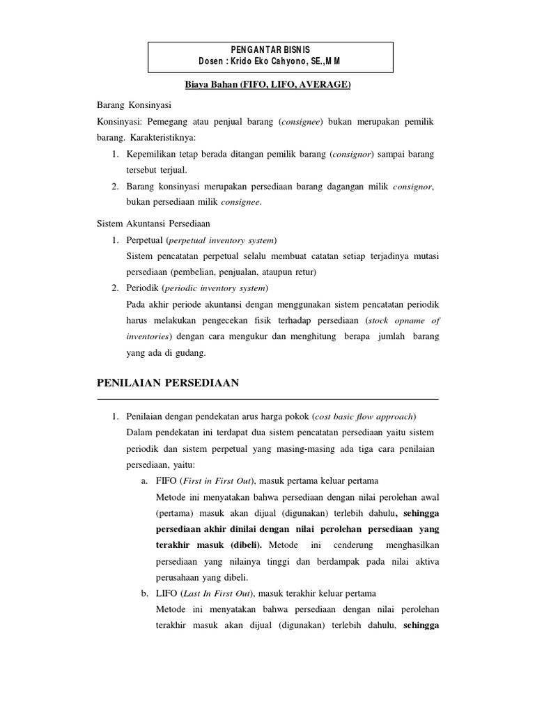 10 Contoh Soal Average Fifo Dan Lifo